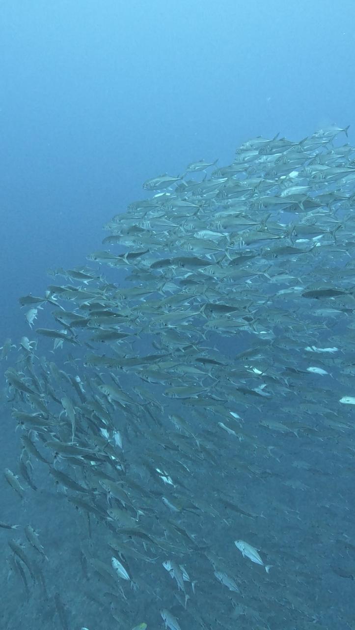 ギンガメアジとバラクーダに遭遇!