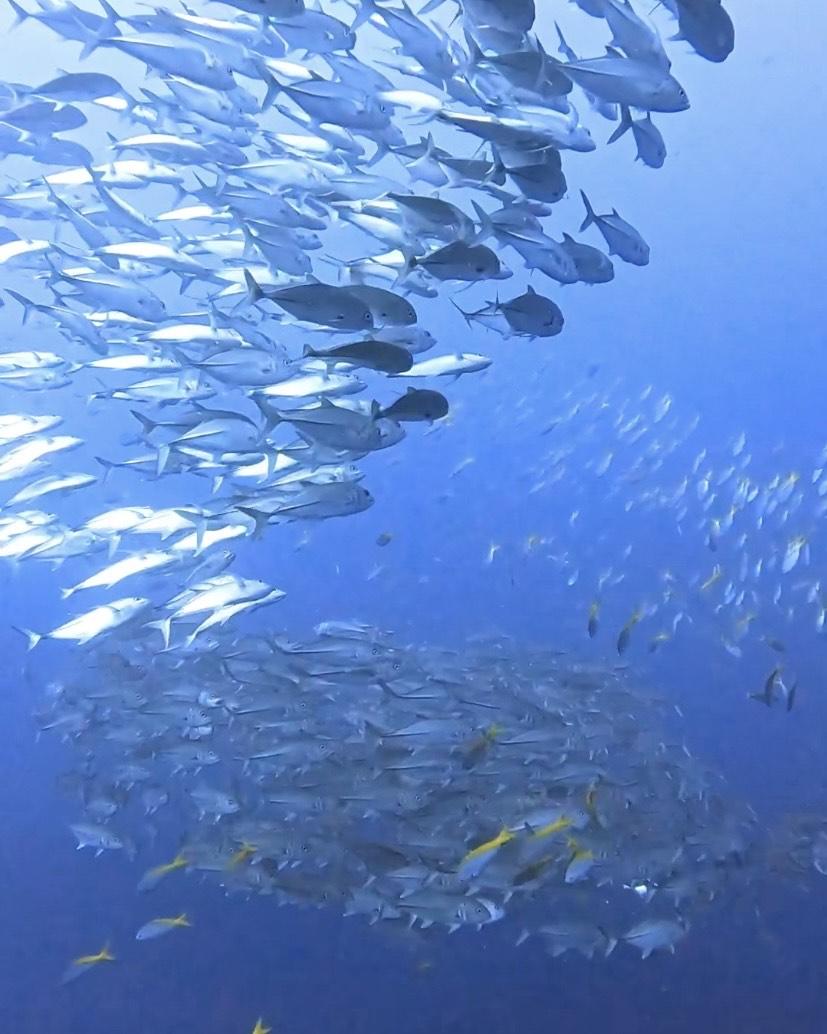 ギンガメアジの2つの群れもいい感じにセットになってくれましたよ〜🐟